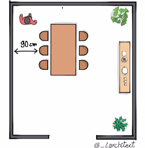 🍽️ Rule #1: Maintain 90cm (3 ft) behind every chair